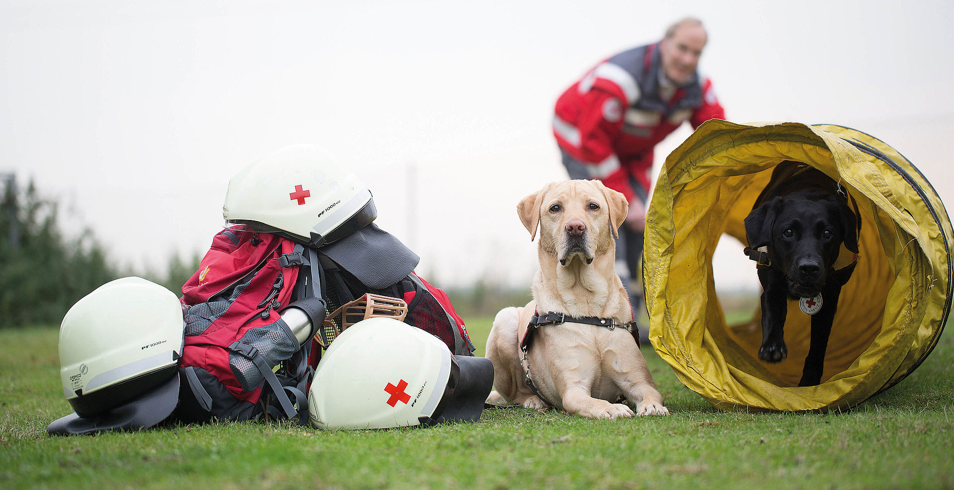 Rettungshunde haben eine lange Tradition: Schon in den beiden Weltkriegen unterstützten sie Sanitätseinheiten bei der Suche nach Verwundeten. Nach der Gründung der Bundesrepublik Deutschland hielten nur wenige engagierte Spezialisten diese wertvolle Arbeit im Deutschen Roten Kreuz lebendig – ihr beharrlicher Einsatz führte schließlich dazu, dass die Rettungshundearbeit fest im DRK verankert wurde.